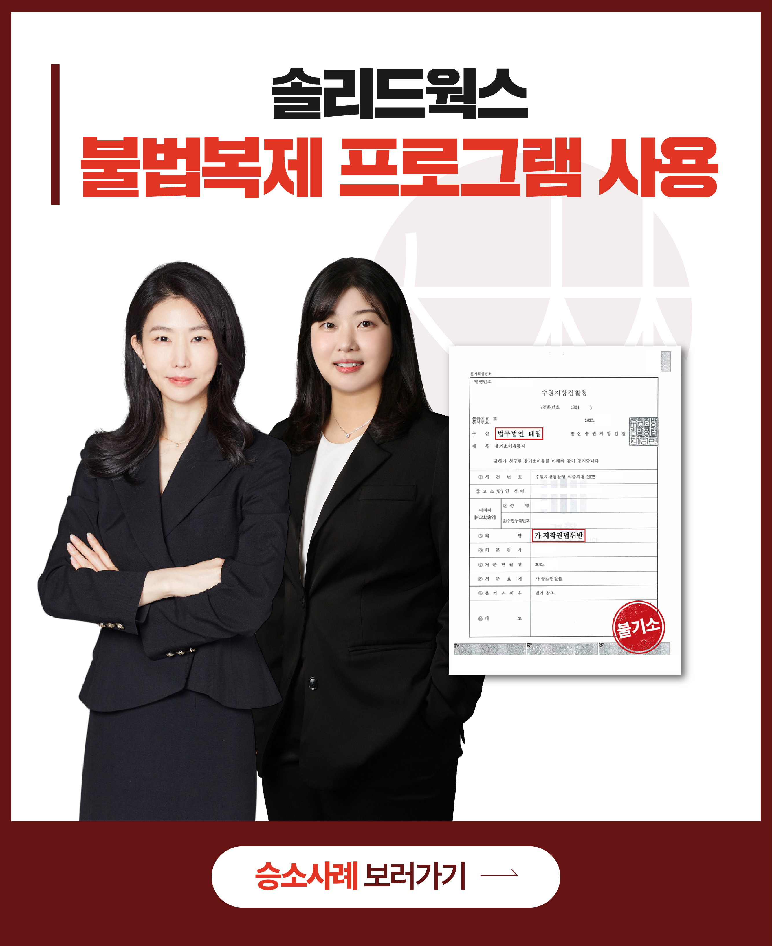 증거수집부터 내용증명, 가처분 신청, 형사 처벌, 손해배상청구까지 태림이 알아서 하겠습니다.